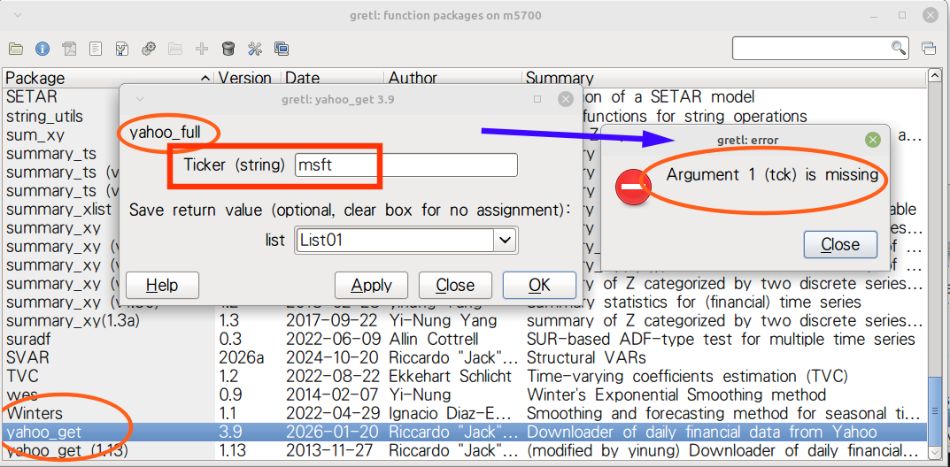 GUI in *Package: yahoo_get 3.9 (2026-01-20)* for *gretl 2026a*.